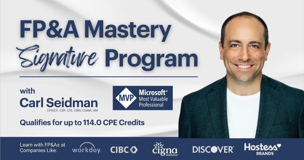 Carl is a go-to FP&A development facilitator for Fortune 500s, mid-market companies, and entrepreneurial businesses. He is a Microsoft MVP (1 of just 35 US-based Excel MVPs) and one of the preeminent trainers and facilitators in strategic finance and FP&A, with more than 13,000 participants attending his financial training programs, seminars, workshops, and masterminds. Notable clients include: